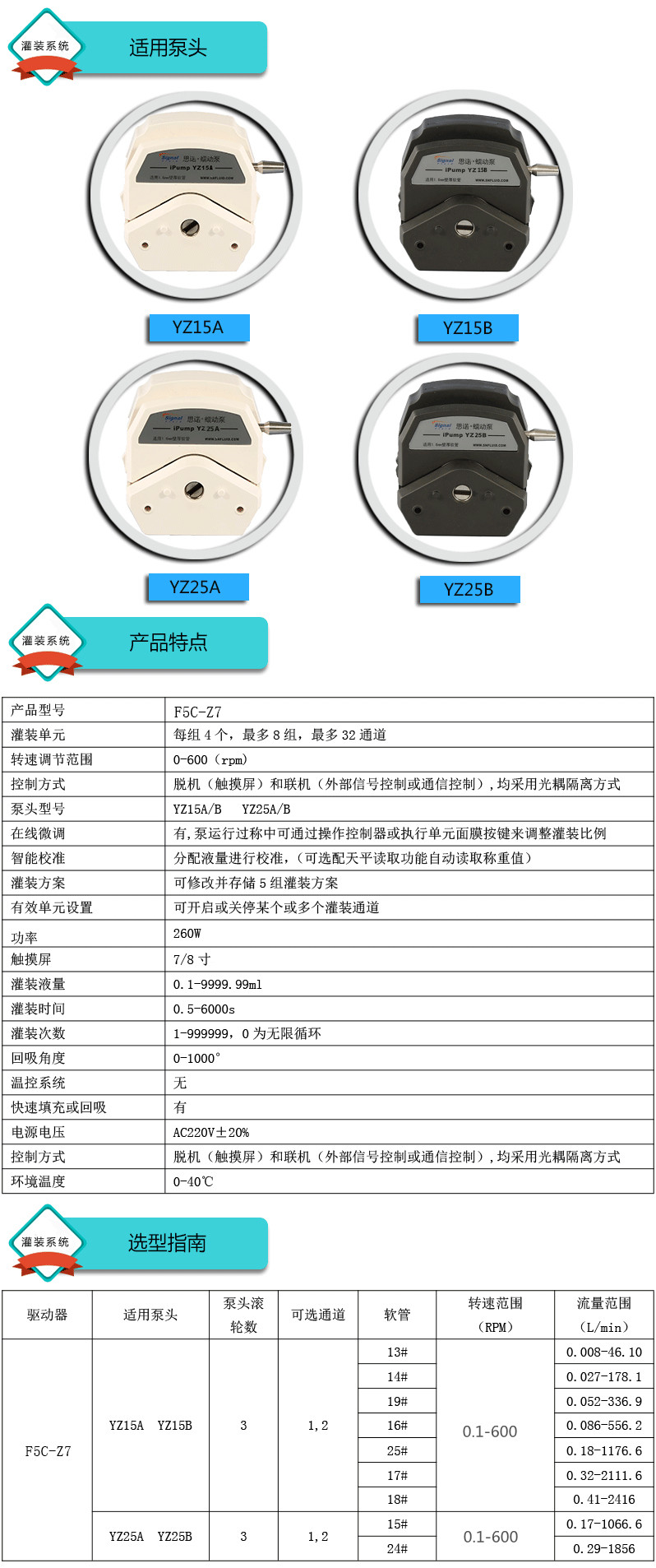 此灌裝系統由5通道組成,通道數量可定制,大可擴展至32通道;可安裝YZ15、YZ25泵頭;