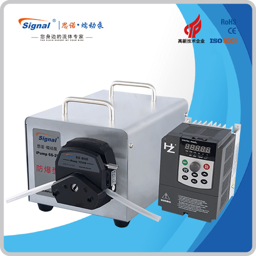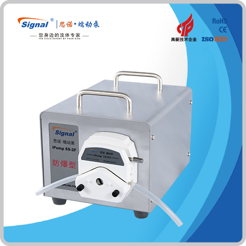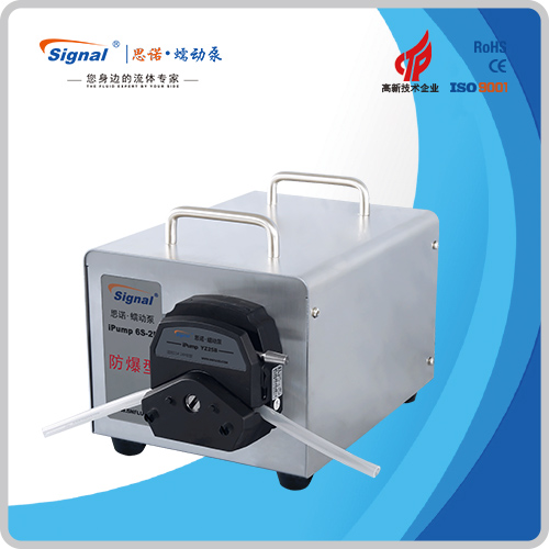 ? ? ?1.流量范圍:3-2416ml/min ? ? ?2.免維護交流防爆減速電機驅動,變頻器調節轉速 ? ? ?3.電機扭矩大,可級聯雙泵頭 ? ? ?4.防爆等級DIIBT4,適合易燃易爆環境使用 ? ? ?5.304不銹鋼外殼,易擦拭,耐腐蝕,便于攜帶