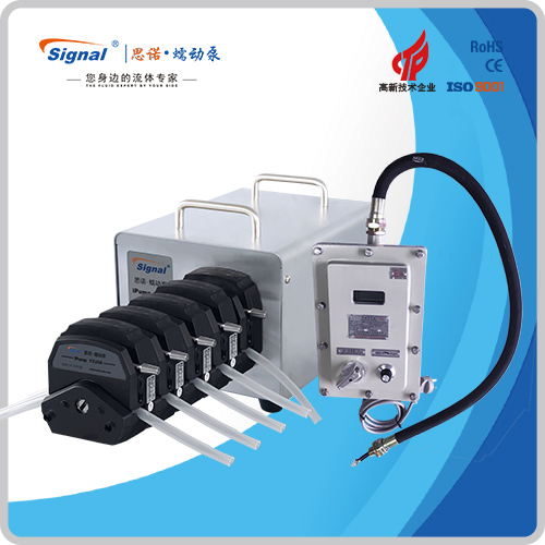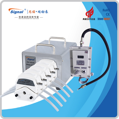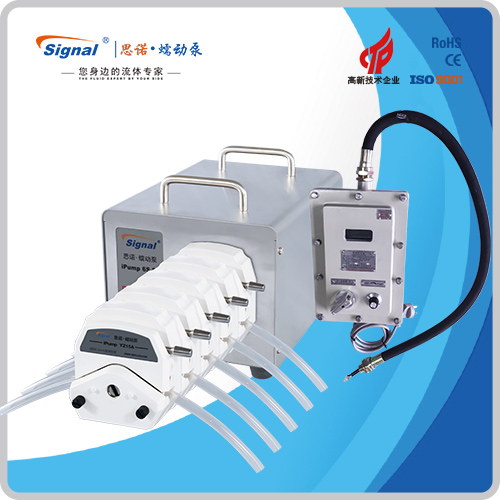 1.流量范圍:3-2416ml/min 2.免維護交流防爆減速電機驅動,變頻器調節轉速 3.電機扭矩大,可級聯雙泵頭 4.防爆等級DIIBT4,適合易燃易爆環境使用 5.304不銹鋼外殼,易擦拭,耐腐蝕,便于攜帶