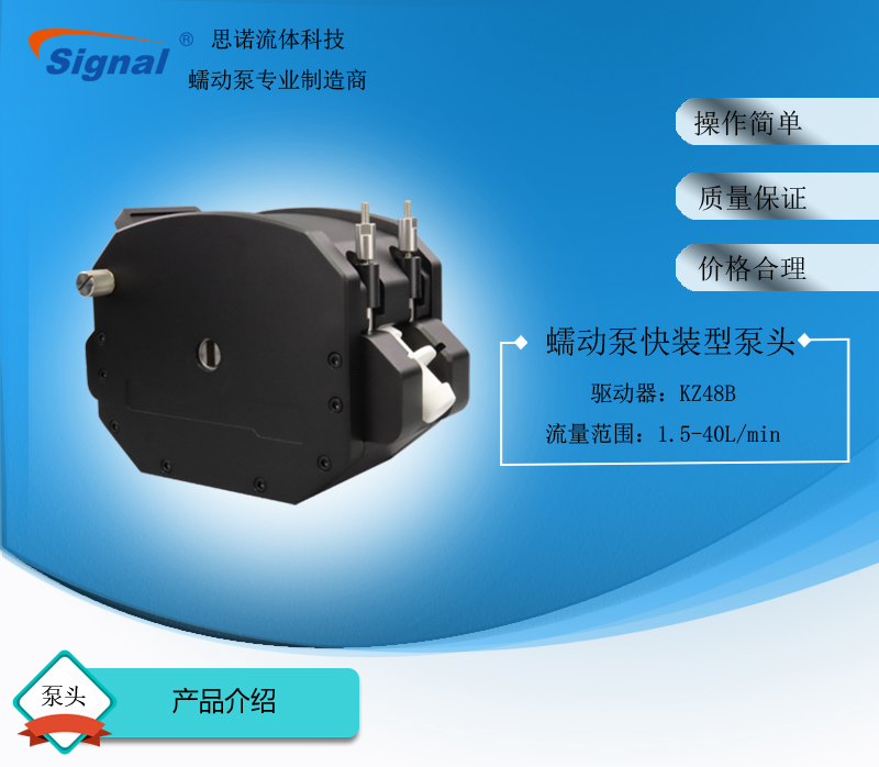 ? ? ? ? ? ?2.? KZ48B使用管接頭,泵頭內部使用一段單獨軟管,外部軟管可使用其 非蠕動泵管路,使用成本低。