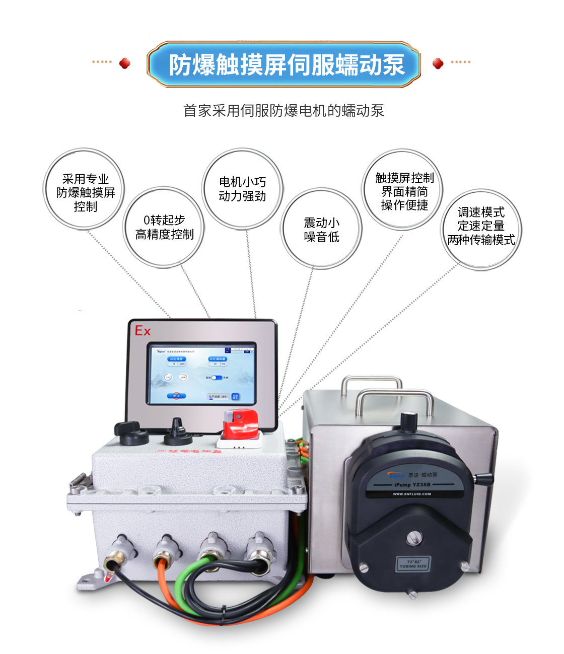 4.防爆觸摸屏伺服蠕動(dòng)泵具有定速定量、調(diào)速模式兩種控制模式,手動(dòng)、自動(dòng)兩種模式可以滿(mǎn)足客戶(hù)的不同需求;