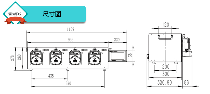 1.此灌裝系統由4通道組成,通道數量可定制,大可擴展至32通道;可安裝YZ35 KZ25 YZ25 YZ15泵頭;