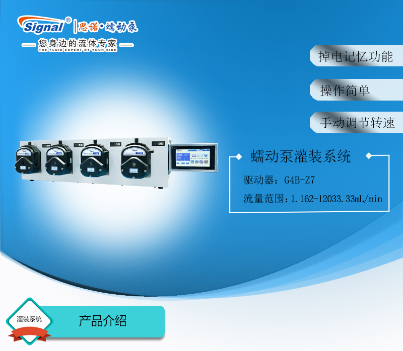 1.此灌裝系統由4通道組成,通道數量可定制,大可擴展至32通道;可安裝YZ25 YZ35 YZ25 YZ15泵頭;
