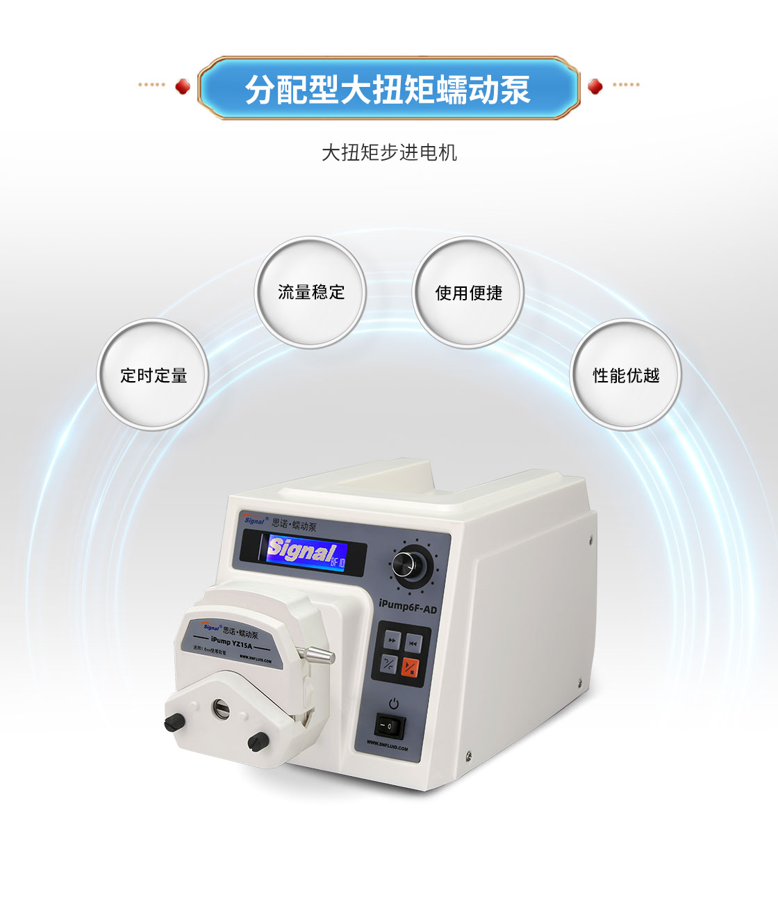 2.大扭矩步進電機驅(qū)動,適合多泵頭串聯(lián)使用;