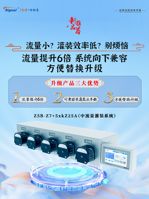 為滿足客戶對(duì)灌裝效率提升的需求,解決客戶對(duì)高流量分配的煩惱,為其帶來流體傳輸體驗(yàn),新品蠕動(dòng)泵灌裝系統(tǒng)——Z5B-Z7+5XKZ25A重磅上市!