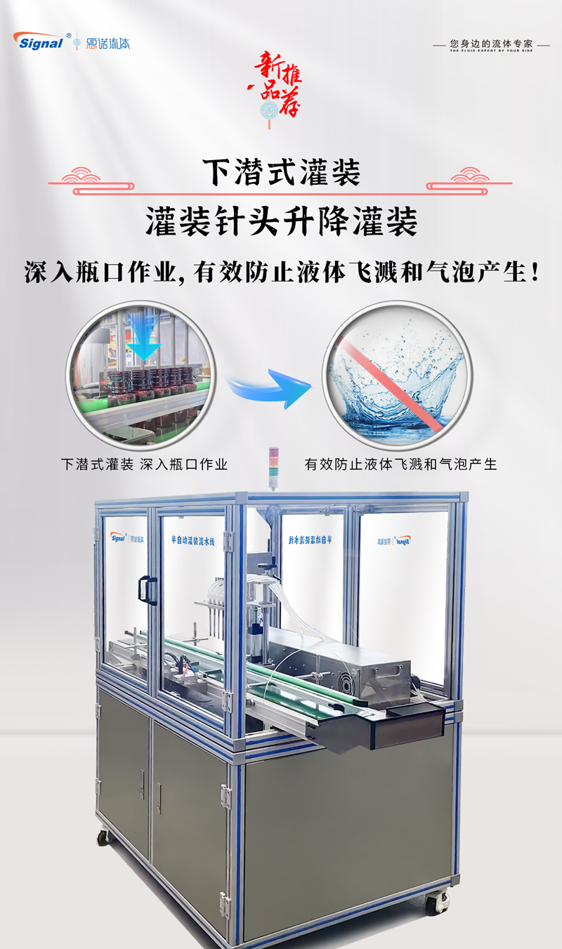 下潛式灌裝設計,灌裝針頭升降自如,精準插入瓶口進行灌裝,避免了液體飛濺和氣泡的產生,保證了灌裝品質。