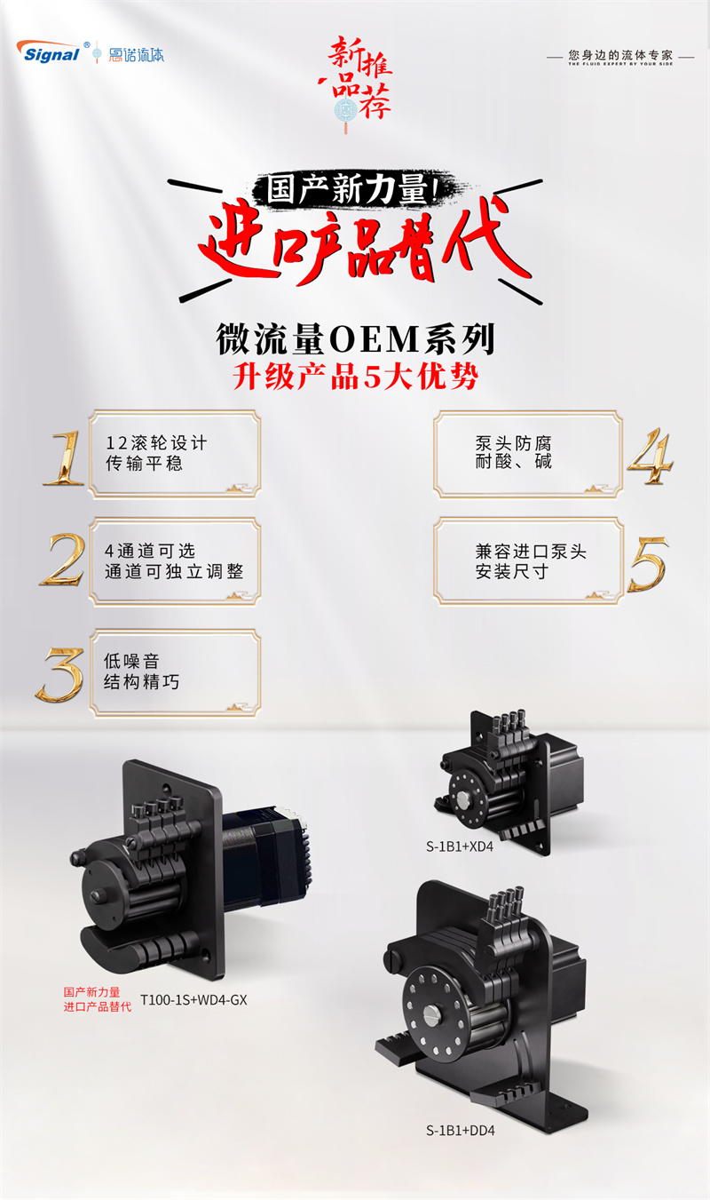 保定思諾隆重推出新微流量OEM系列產(chǎn)品——WD4、XD4、DD4,標(biāo)志著國(guó)產(chǎn)微流量蠕動(dòng)泵正式以技術(shù)創(chuàng)新破局,成為不可忽視的“國(guó)產(chǎn)新力量”。本系列產(chǎn)品實(shí)現(xiàn)對(duì)進(jìn)口產(chǎn)品的直接替代,為關(guān)鍵領(lǐng)域提供自主可控的精密流體解決方案。