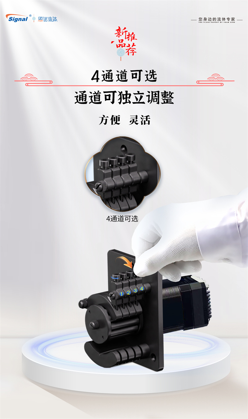 此系列蠕動(dòng)泵產(chǎn)品采用12滾輪結(jié)構(gòu)設(shè)計(jì),流體輸送平穩(wěn)均勻,有效減小脈沖,在緊湊結(jié)構(gòu)中蘊(yùn)含著超越體積的強(qiáng)大性能,兼顧快捷、穩(wěn)定與高效。產(chǎn)品提供4個(gè)通道可選配置,通道均可獨(dú)立調(diào)整,用戶可根據(jù)實(shí)際情況選擇通道數(shù)量。