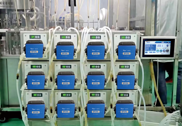 在制藥行業,灌裝是藥品生產的關鍵工序之一,直接關系到藥品劑量的準確性和產品質量。無論是液體注射劑、口服液還是眼藥水,灌裝設備都必須滿足高精度、高潔凈度、高穩定性的嚴苛要求。思諾低脈動SF25L蠕動泵憑借其創新的低脈動技術、緊湊的雙通道結構以及多重安全傳感設計,為制藥灌裝提供了理想的流體解決方案。