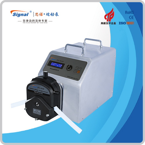 微型蠕動泵的傳輸對于粘度比較敏感,即使我們看起來稠度沒有那么高的液體,只要拉絲,就會嚴(yán)重影響蠕動泵的流量,因?yàn)橐后w會把軟管內(nèi)壁粘在一起,無法彈起,比如蠕動泵傳輸蜂蜜的話,無論多大的泵,流量都會非常小,使用價值不大。但是像類似番茄醬的這種有稠度但不拉絲的液體來說,分配型蠕動泵是可以傳輸?shù)模髁看笾聲幸话氲乃p(不是絕D的,和管本身的材質(zhì)尺寸也有一定的關(guān)系),所以蠕動泵傳輸類似番茄醬的液體就是具備使用價值的。